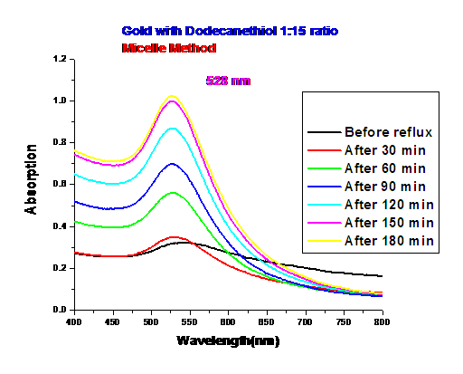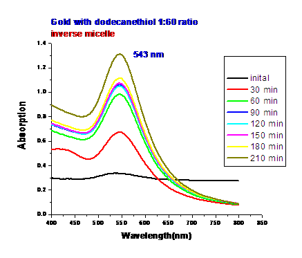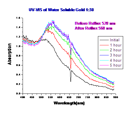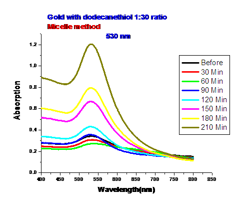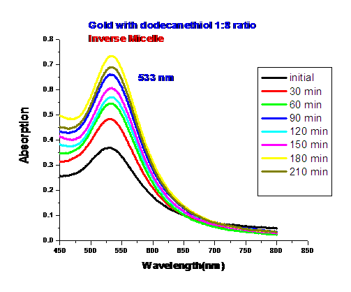 • The gold Plasmon is shifting upward and more defined overtime