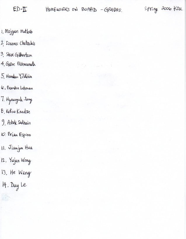 Line-up for homework presentations.