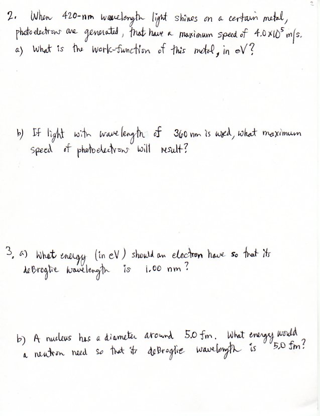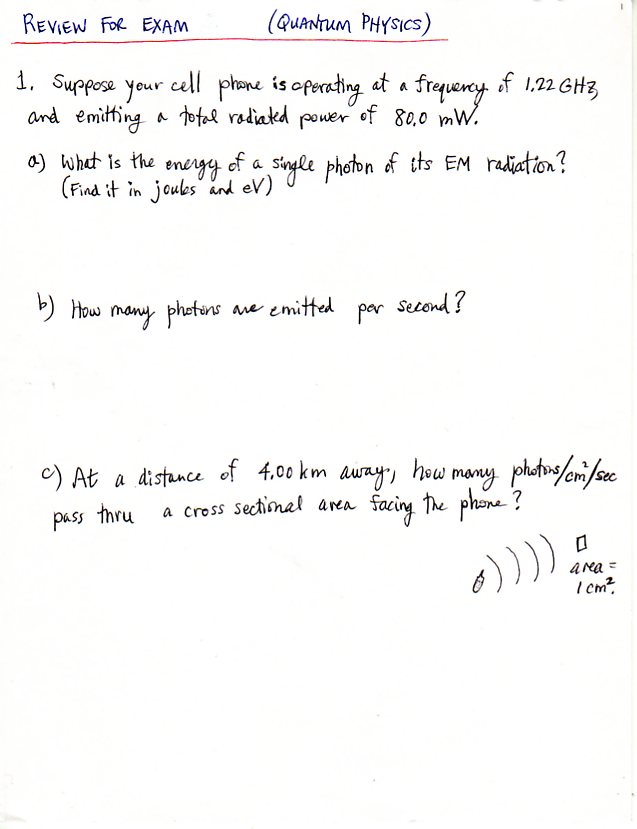 Review for Exam 4, Chapters 26, 27 & 28 -- Modern Physics.