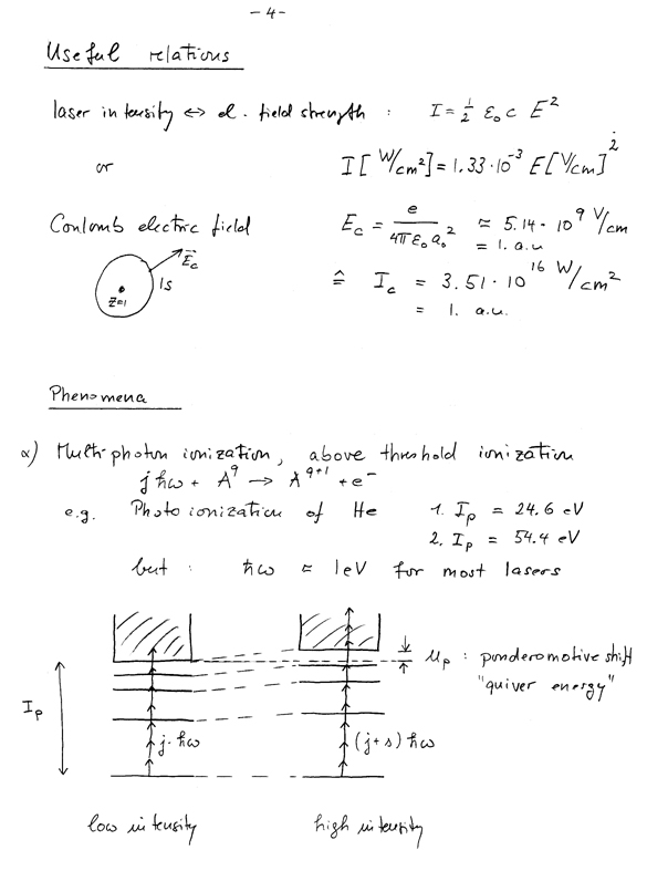 Laser - matter interactions, Uwe Thumm, Kansas State University, Fall 2000