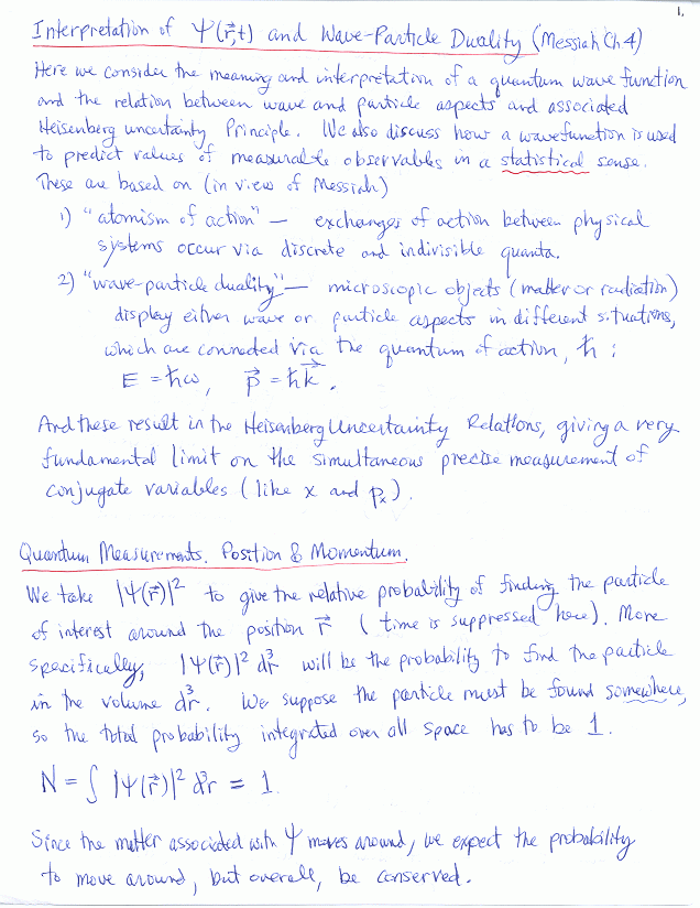 Interpretation of Psi and Wave-Particle Duality (Messiah, Ch. IV)