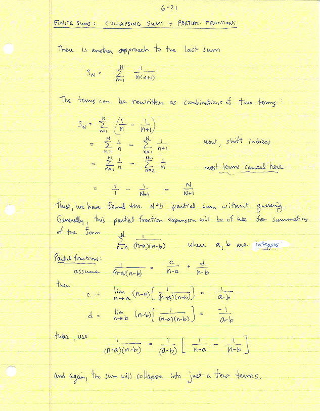 Evaluation of Finite and Infinite Sums, Partial Fractions, Integrations