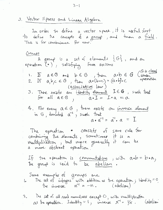 Vector Spaces: Groups, Bases, Operators